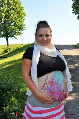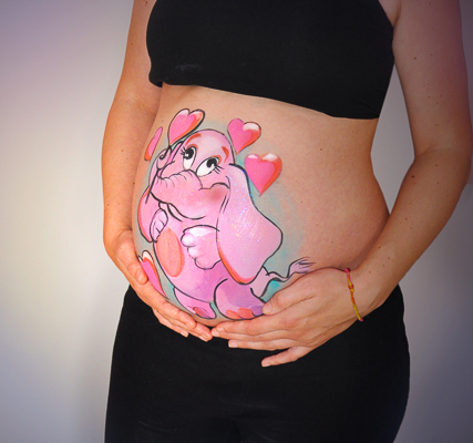 Bellypaint! Wat een goed idee om uw unieke zwangerschap op deze leuke manier te vereeuwigen.De bellypainting die wij samen maken is altijd uniek en het belangrijkste is,elk idee dat u heeft, kunnen wij uitvoeren!U vertelt eerst wat uw ideeën voor de belly paint zijn. Ik maak een schets, zodat u kunt zienhoe het er uiteindelijk uit zal komen te zien.Het maken van de bellypainting kan bij u of bij mij thuis of op een andere locatie, tijdens uw babyshower.Mocht u het op prijs stellen, kan ik ook uw make-up en hairstyling verzorgen.Nadat de bellypaint gemaakt is, kunnen wij ook een fotoshoot doen.Een aantal foto's zal ik in Photoshop nabewerken, voor het perfecte resultaat.Zie onze prijzen in de prijslijst |